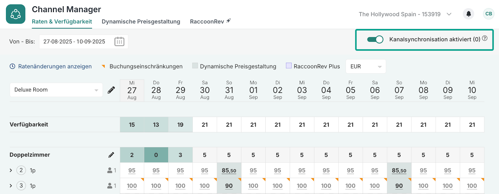 Nur deine Änderungen an Raten & Verfügbarkeit werden gesammelt, bis du die Synchronisierung wieder einschaltest.