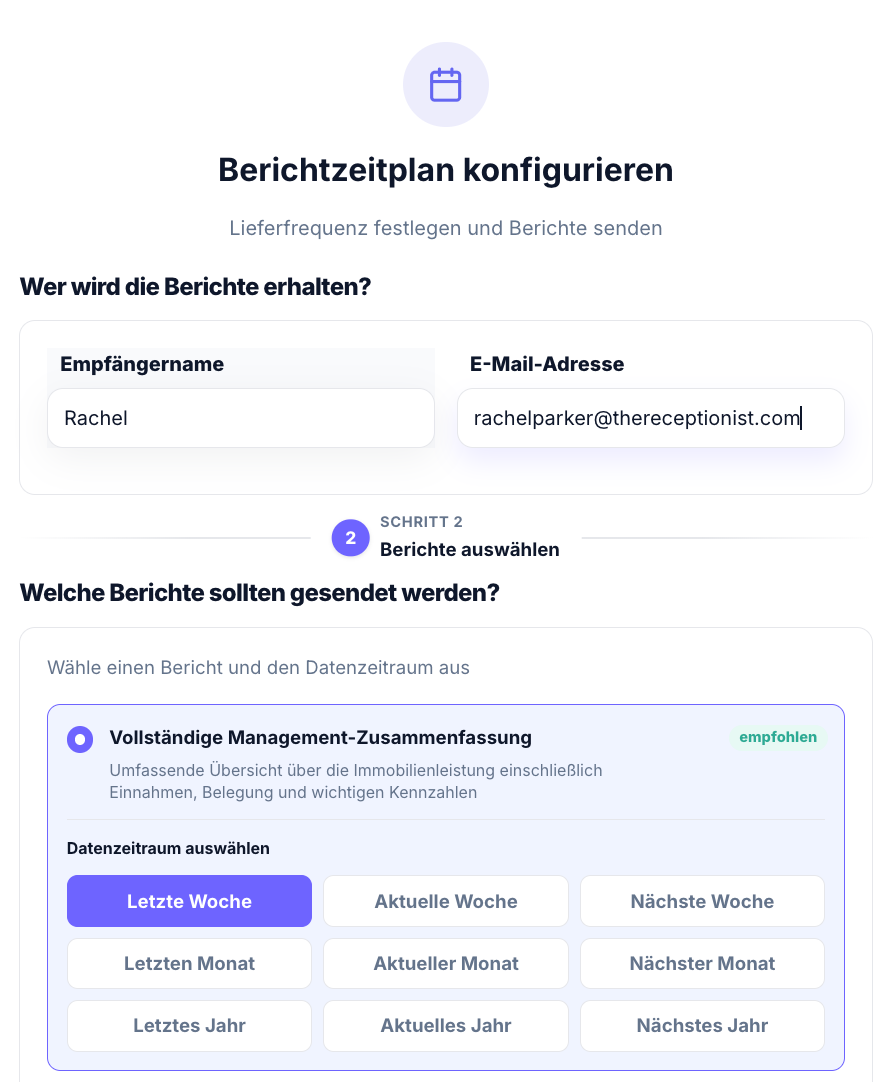 Empfängerdaten prüfen: Bestätige, wer den Bericht erhalten soll.