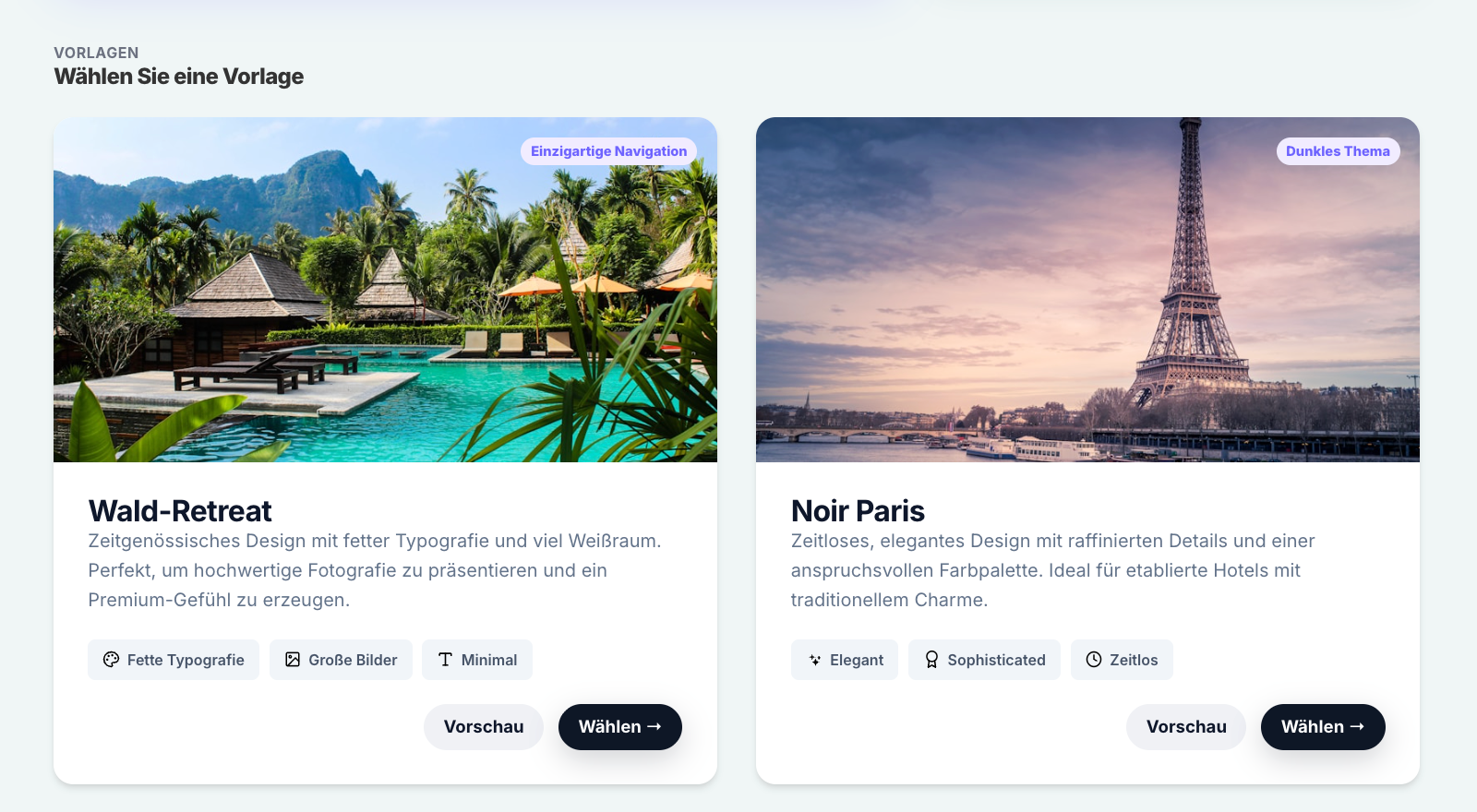 • Video-Header: Präsentiere deine Unterkunft mit einem großflächigen Video, das die Atmosphäre und das Erlebnis eines Aufenthalts widerspiegelt.