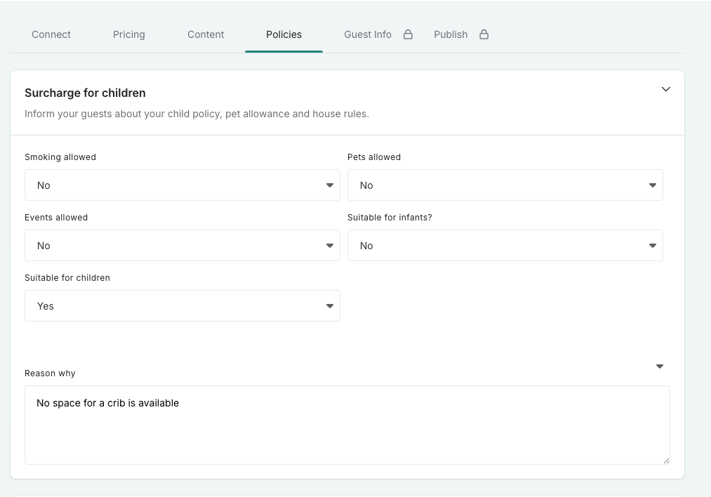 1. Should children or infants not be suitable for the listing, Airbnb requires you to provide a reason: