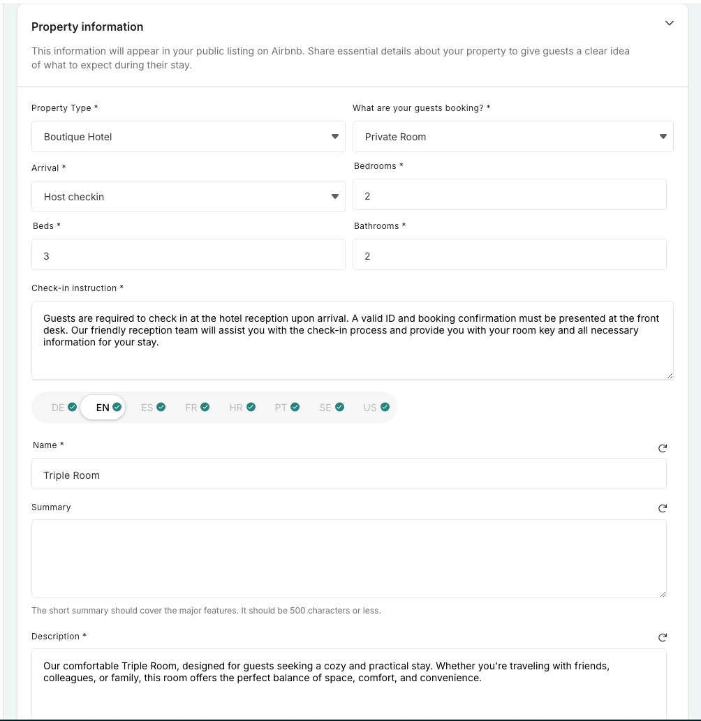 Note: Other listing details, such as amenities and policies, will still need to be managed in Airbnb unless RoomRaccoon provides dedicated fields for them.