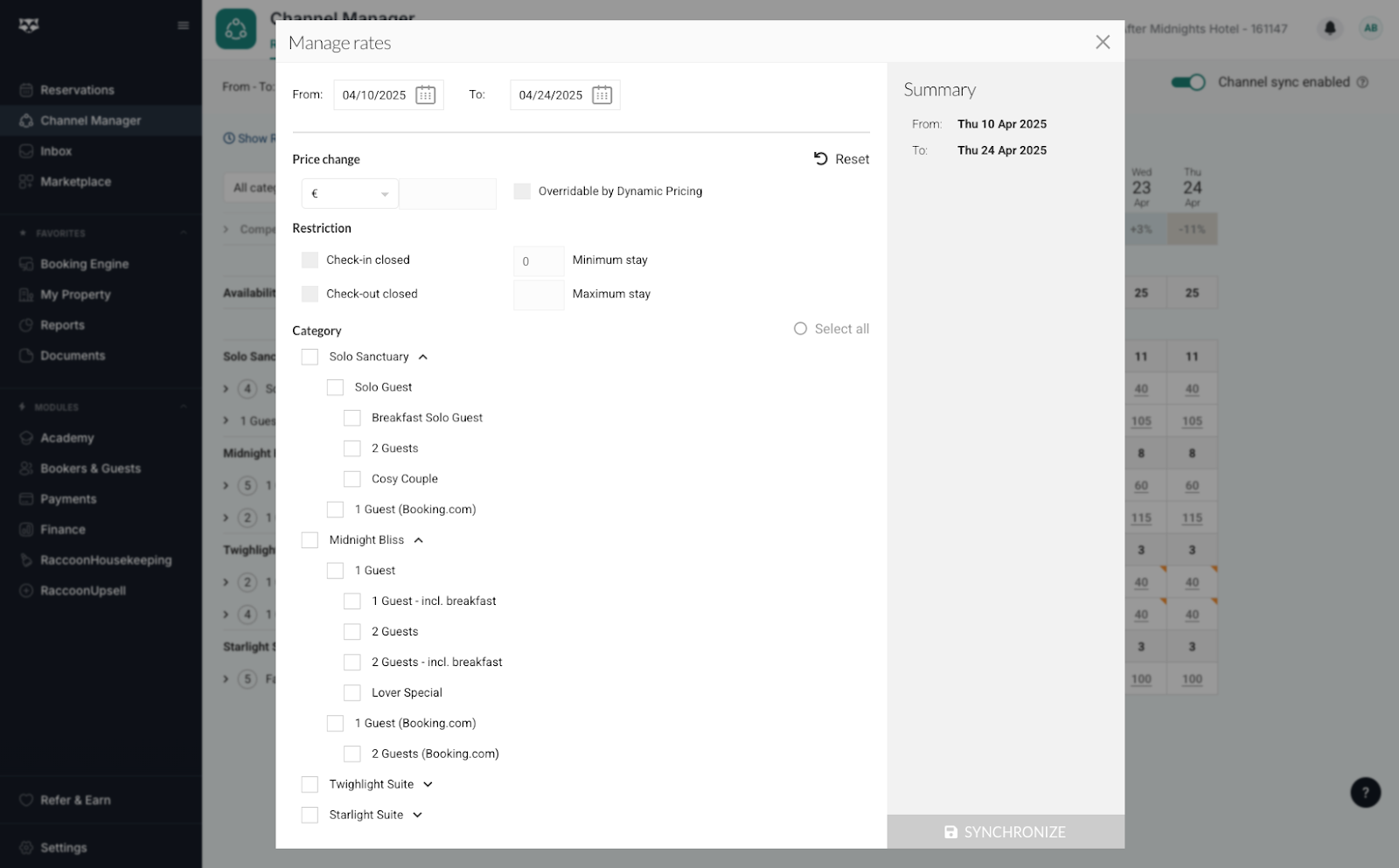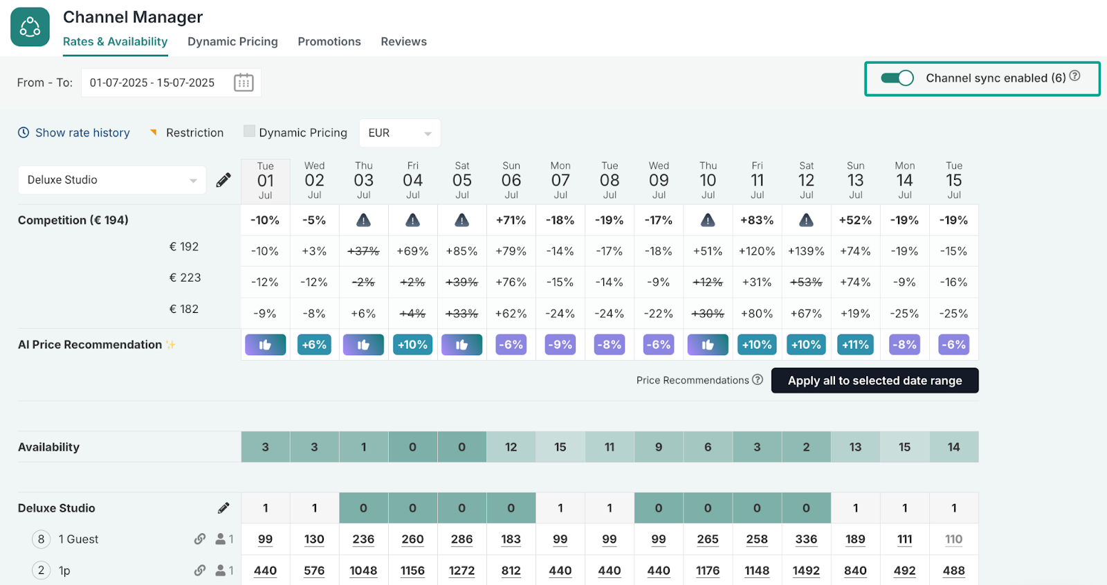 You can manually update individual rates in the Channel Manager by turning off the sync toggle. This allows you to: