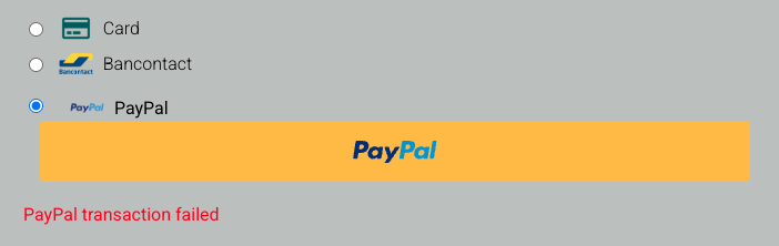If the guest closes the PayPal pop-up before confirming, the payment is marked as cancelled