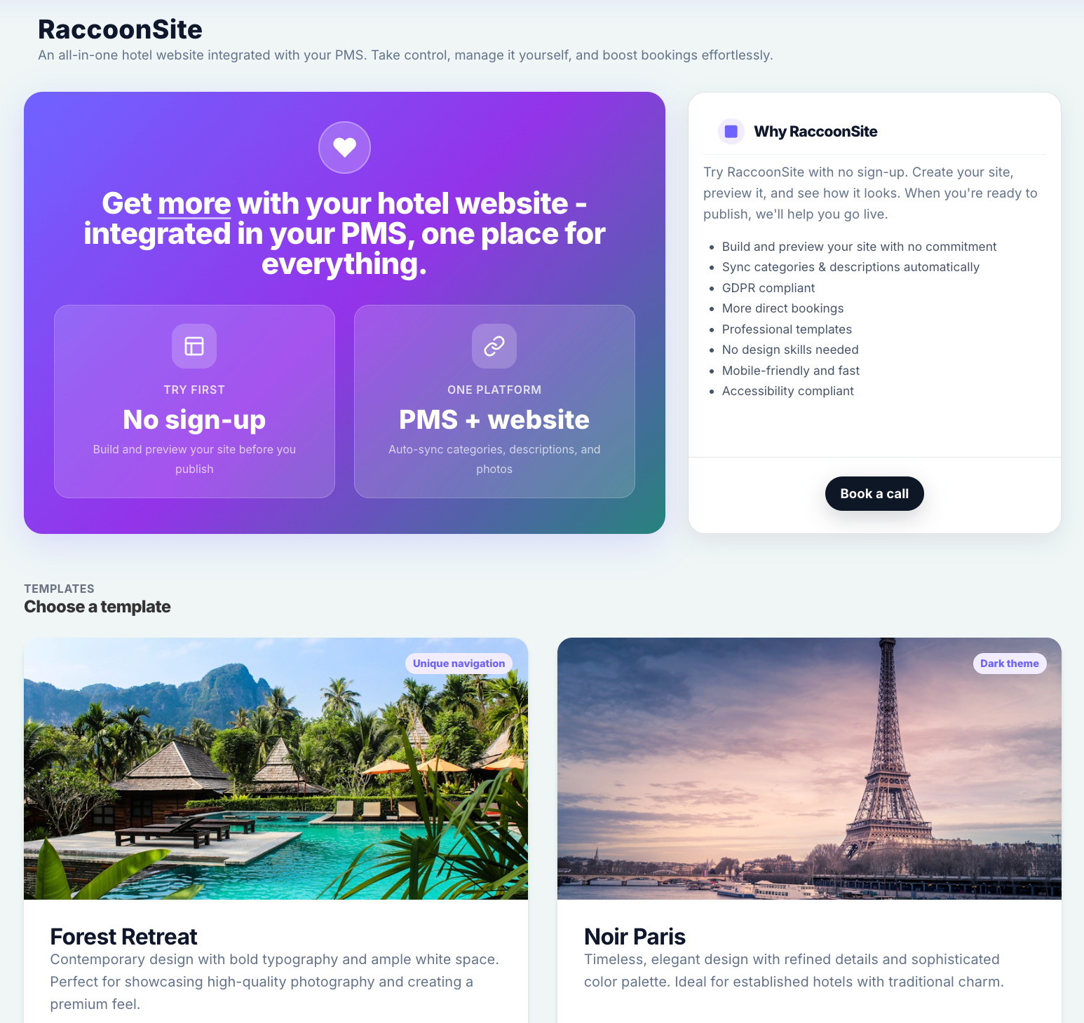 We’ve taken RaccoonSite to the next level—our self-service website builder is now fully integrated into the RoomRaccoon PMS, giving you a faster, smoother way to manage your entire online presence from one place.