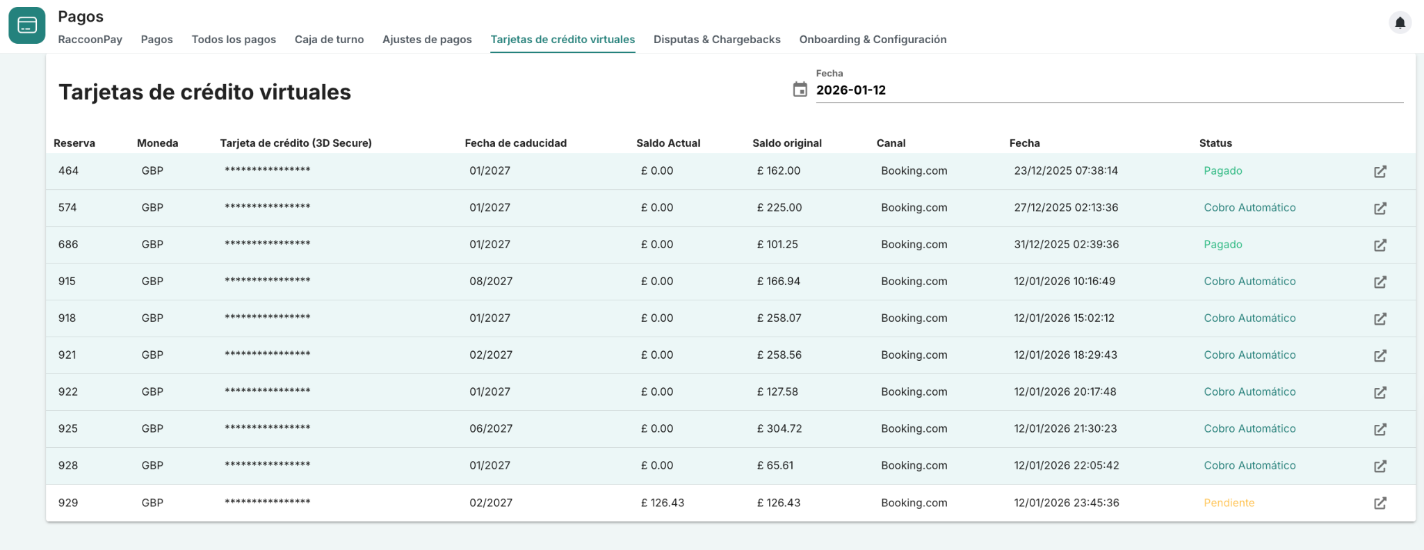 Tus canales de reserva (por ejemplo, Booking.com, Expedia, etc.) deben enviar los datos de la VCC dentro de la información de la reserva a RoomRaccoon.
