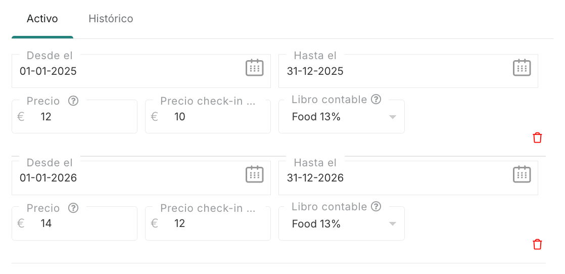 Ahora puedes planificar precios de complementos y asignar libros contables (ledgers) por adelantado, igual que en la programación del impuesto turístico.
