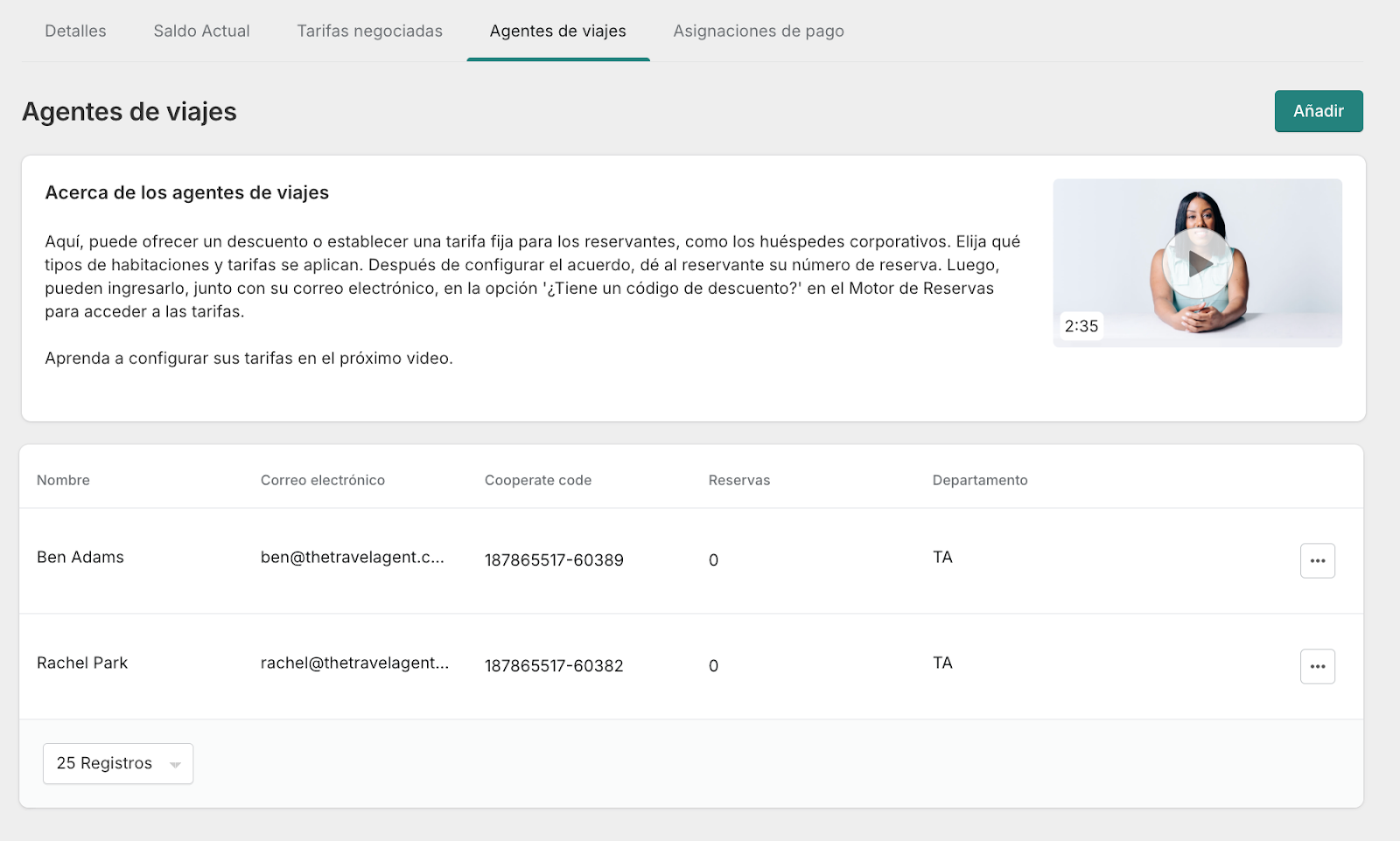 • Gestión centralizada: configura las tarifas negociadas y los datos de empresa una sola vez desde el perfil principal del reservante.