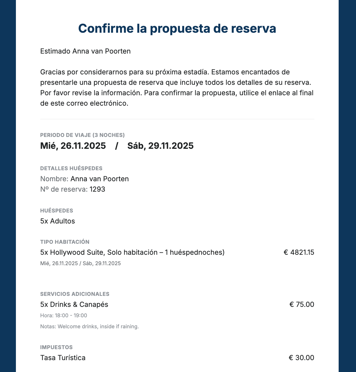 ¡Una herramienta fantástica para tus conferencias y eventos! Ahora puedes incluir comentarios y horarios de los complementos directamente en el documento de propuesta de reserva. Cómo funciona: