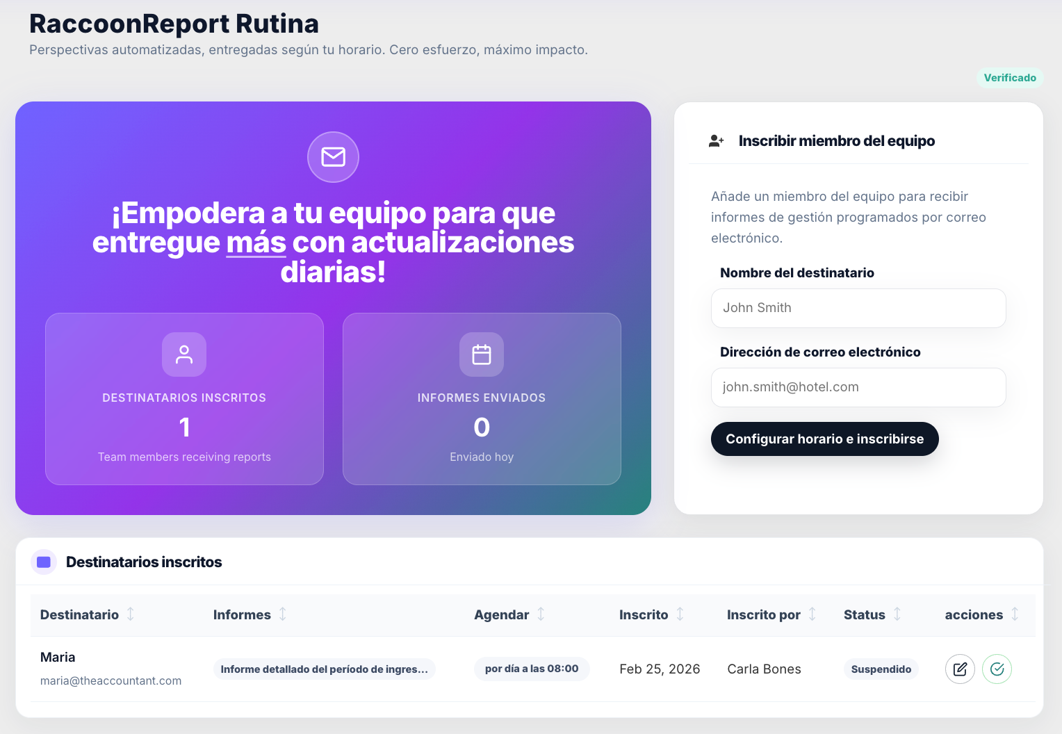 Descubre cómo configurar RaccoonReport Rutina aquí.