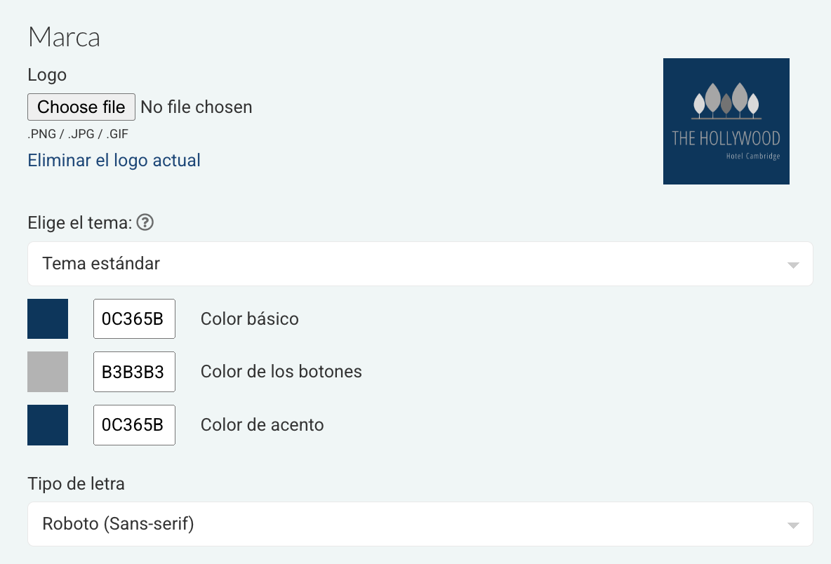 Aquí puedes personalizar ciertos elementos básicos para que coincidan con la identidad de tu marca.