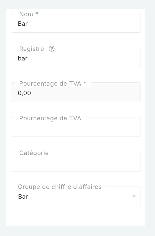 En bas du ledger, à la ligne Groupe de revenus, sélectionnez le groupe de revenus applicable.