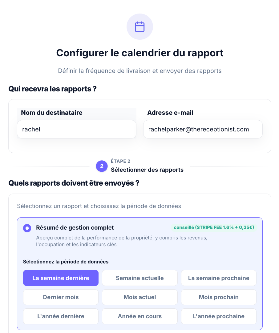Vérifier les informations du destinataire : Confirmez la personne qui recevra le rapport.