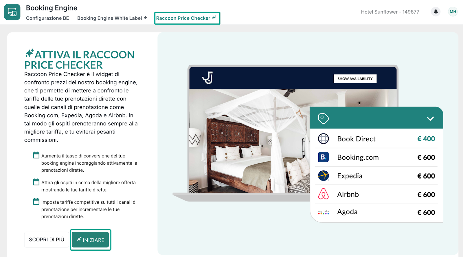 Il Price Checker è disponibile solo per chi ha un piano Premium o Enterprise di RoomRaccoon.