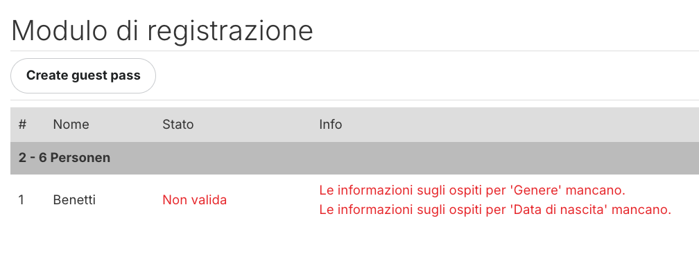 Verifica che tutti i dati obbligatori dell’ospite siano compilati.