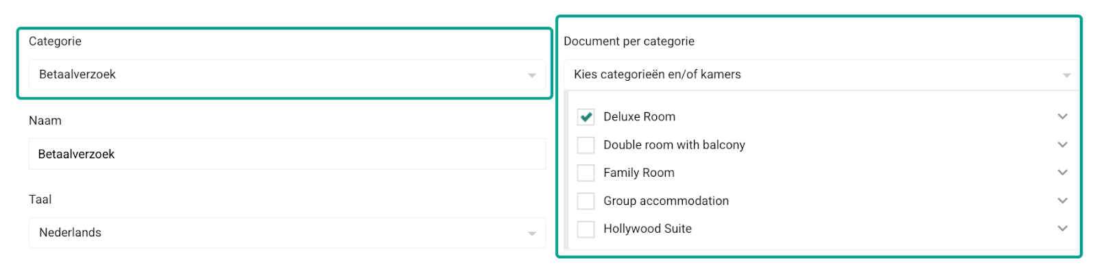 OPTIONEEL: Je kunt meerdere betaalverzoeken maken voor verschillende kamertypes.