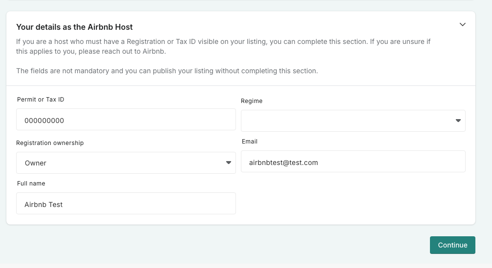 Op deze pagina kun je ook je hostgegevens invullen. Het meeste wordt overgenomen uit je instellingen in RoomRaccoon. Je kunt dit eventueel aanpassen. Een Vergunnings- of Belasting-ID is alleen verplicht in sommige regio’s.