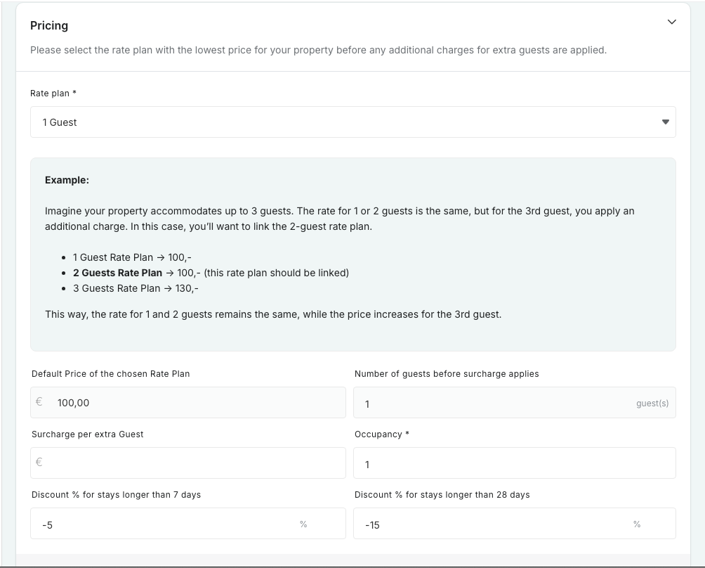 Kies je basisprijs (meestal het 1P Airbnb tariefplan met een toeslag en totale bezetting).