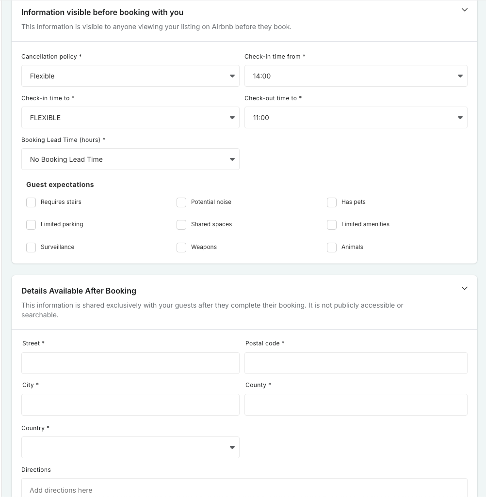 Let op: dingen zoals voorzieningen en beleidsregels moet je nog steeds in Airbnb beheren, tenzij RoomRaccoon daar aparte velden voor heeft.