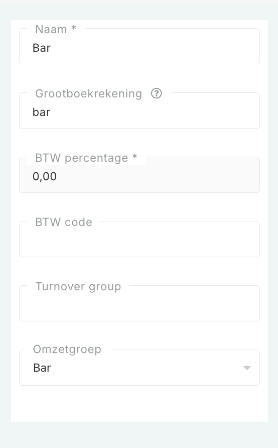 Ga naar de Boekhouding-module > tabblad Omzetgroep.