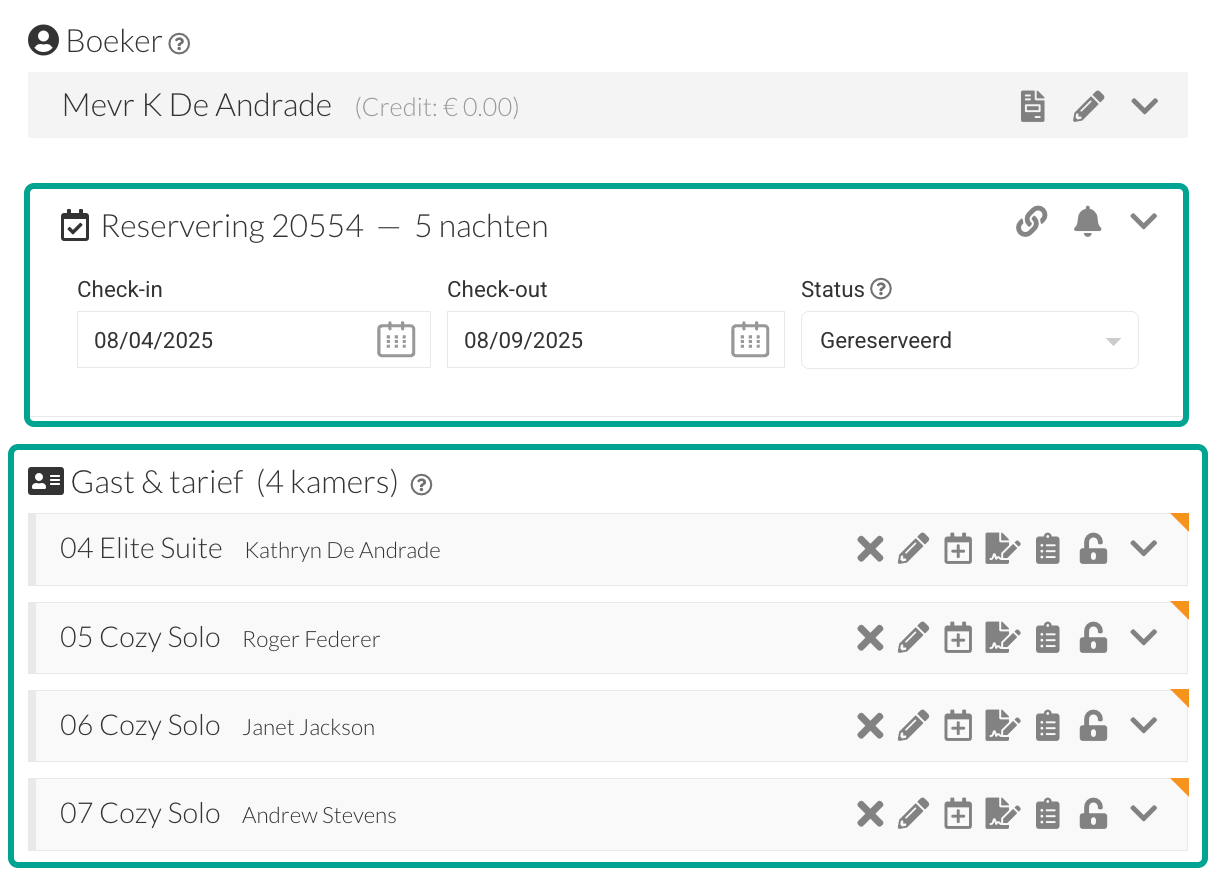 Een groepsreservering bestaat uit meerdere kamers met dezelfde boeker én dezelfde in- en uitcheckdata. Denk aan groepsreizen, conferenties of zakelijke verblijven.