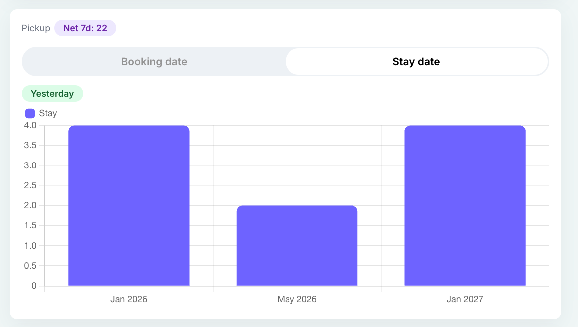Pickup laat zien hoe je boekingen zich ontwikkelen.