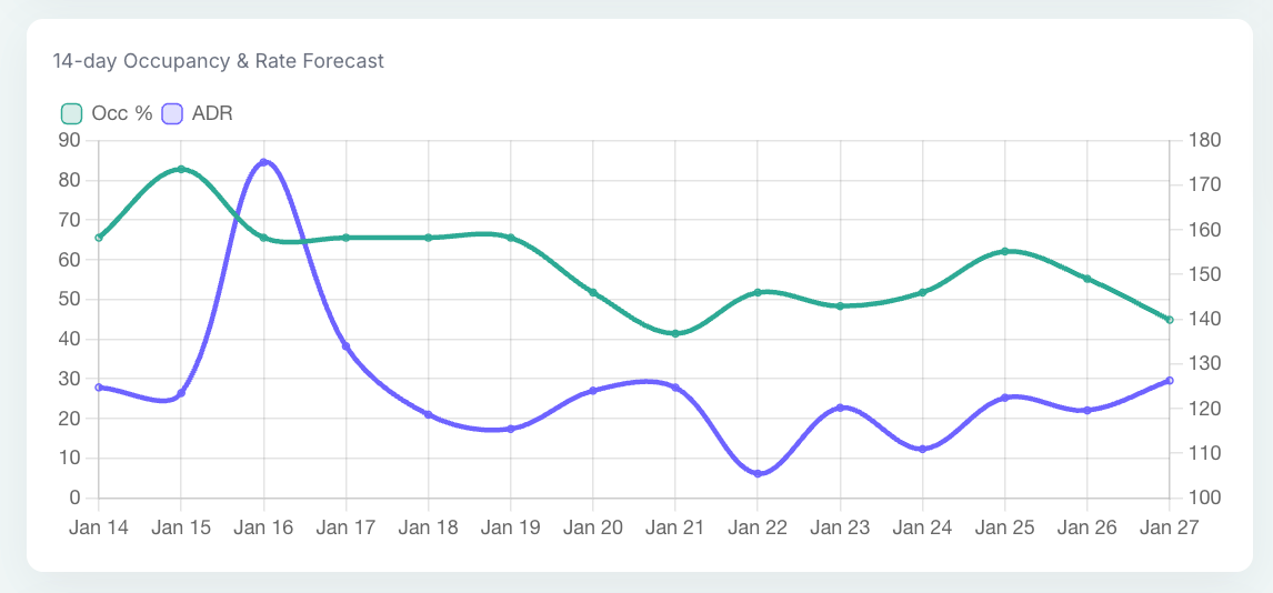 ADR (Average Daily Rate) - Toont het gemiddelde tarief van vandaag verkochte kamers.