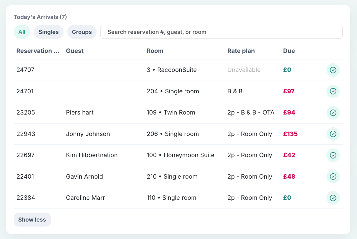 Duidelijk inzicht in aankomsten, vertrekken en housekeeping