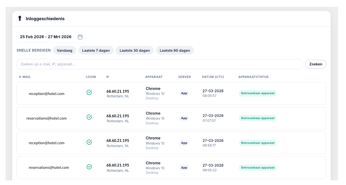 Met dit overzicht kun je zien wie er heeft ingelogd, wanneer dit is gebeurd en vanaf welk apparaat of welke locatie.