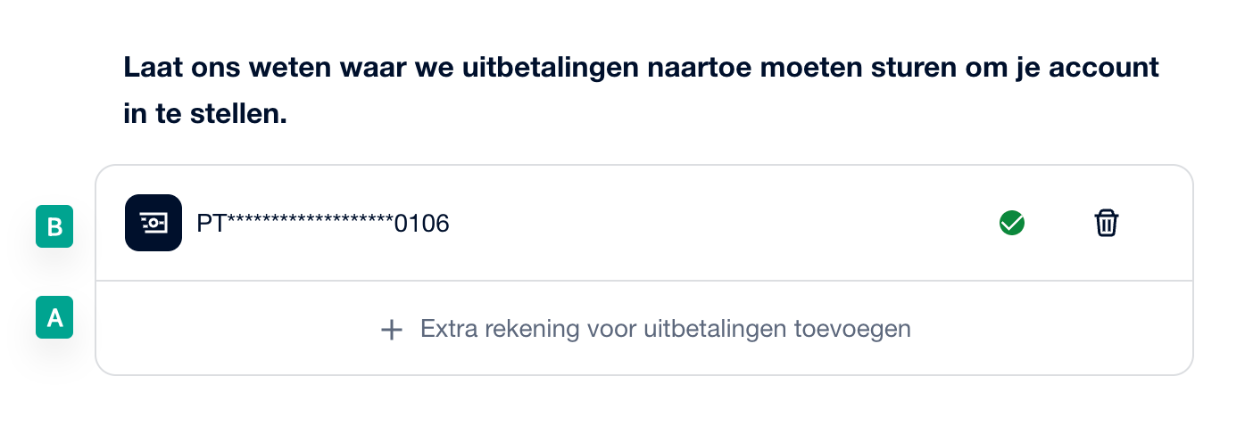 Optie A: Nieuwe uitbetalingsrekening toevoegen (aanbevolen)
