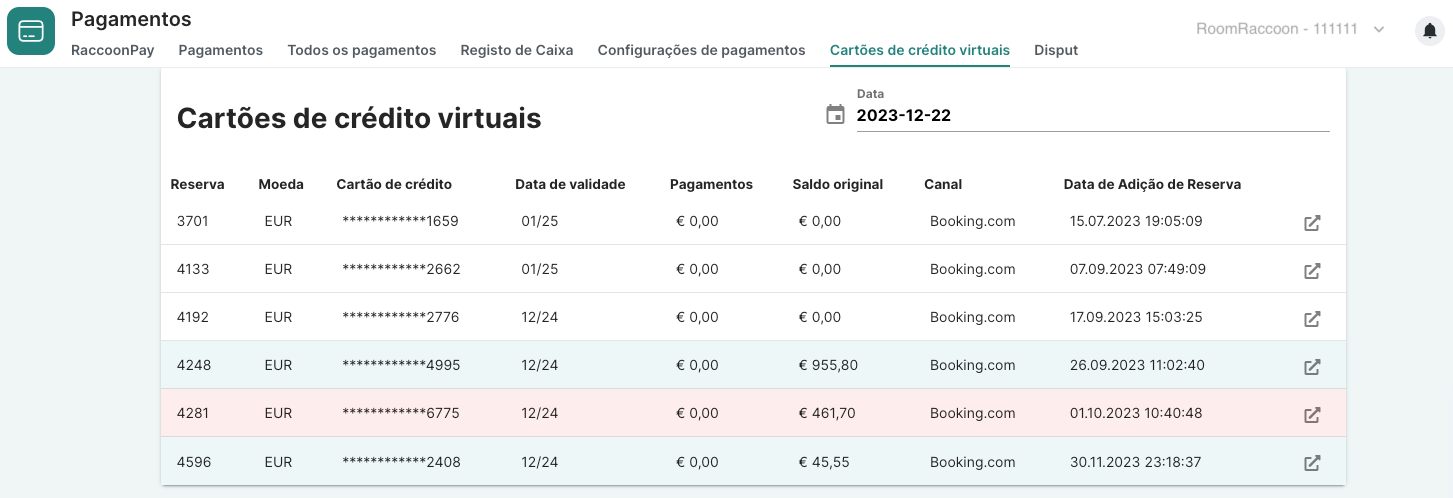 Os seus canais de reserva (ex: Booking.com, Expedia, etc) devem incluir os detalhes do VCC nas informações de reserva que estão a enviar para o RoomRaccoon. Se isto ainda não estiver a acontecer, por favor contacte diretamente os seus canais de reserva e solicite esta alteração.