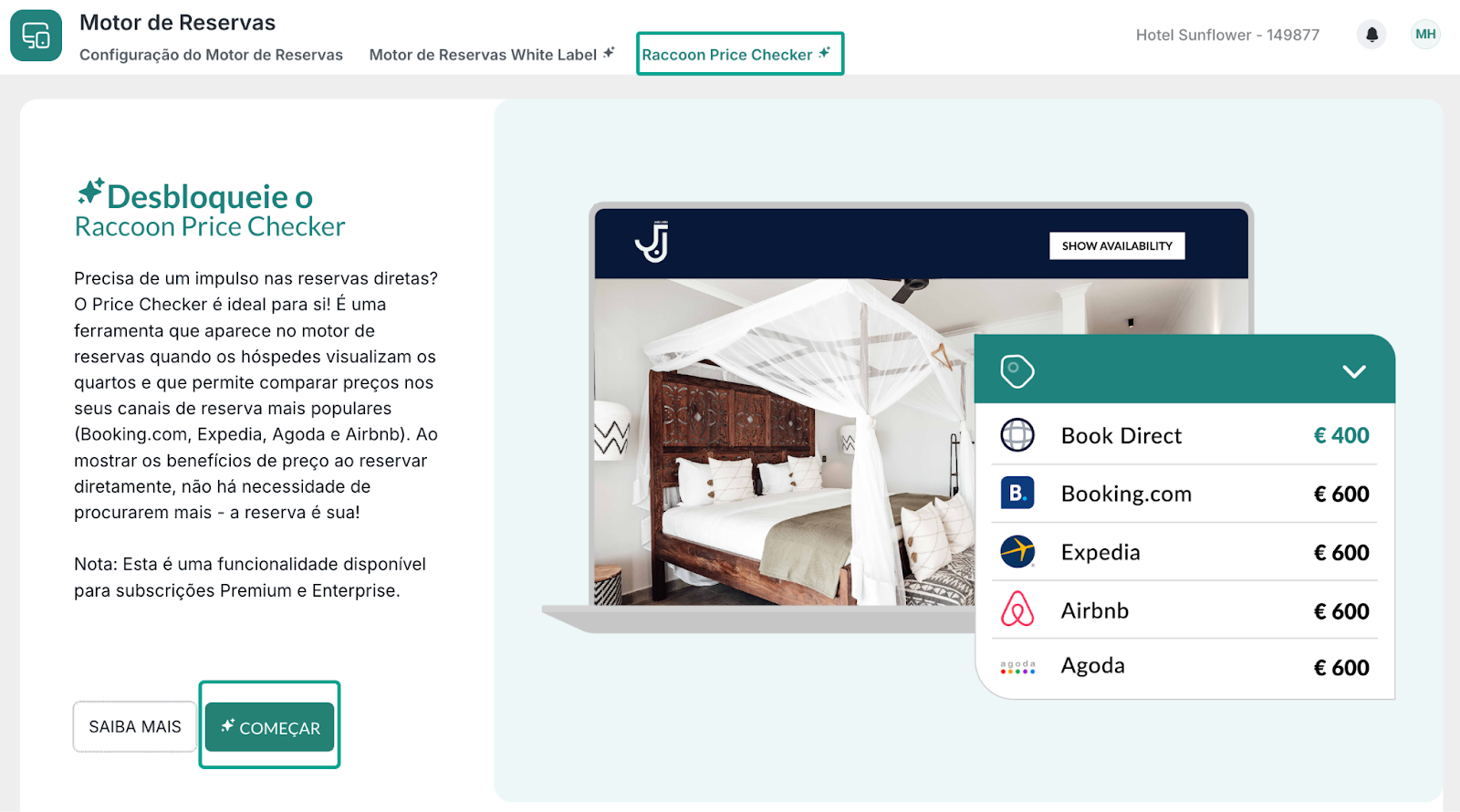 O Price Checker está disponível apenas para subscritores dos planos Premium ou Enterprise da RoomRaccoon.