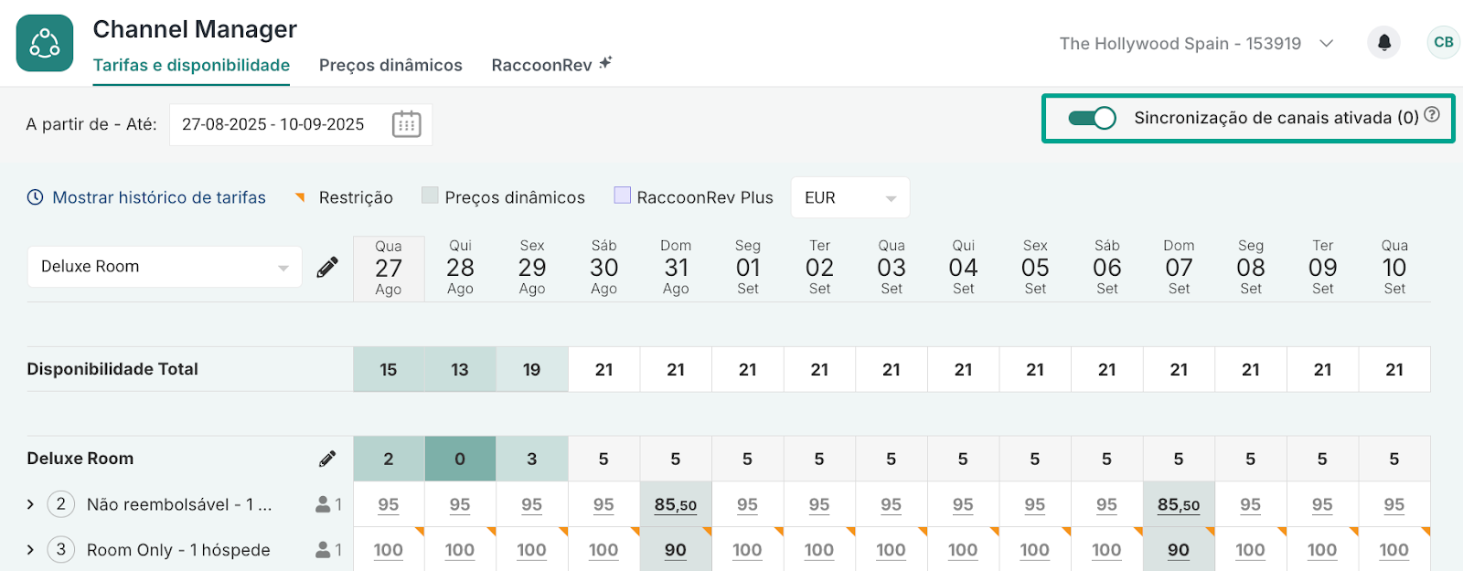 Não é possível sair do módulo Channel Manager com o interruptor desligado — isto garante que as últimas tarifas e restrições são sempre sincronizadas com os canais ligados.