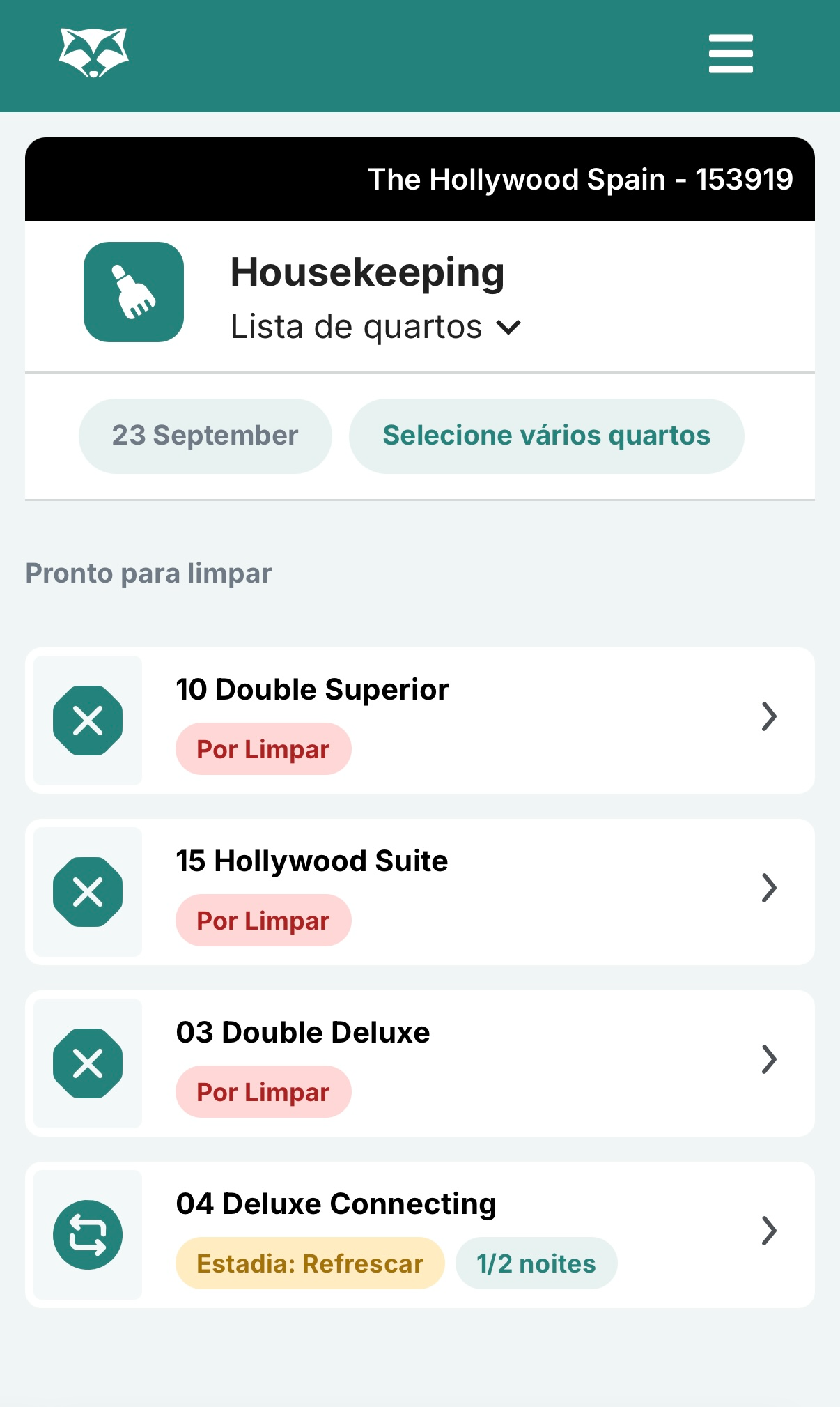 A equipa de receção pode gerir os relatórios diretamente no módulo de housekeeping: