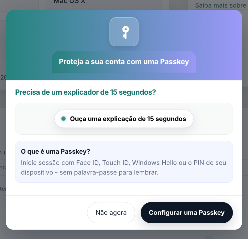 Nota: As Chaves de Acesso são suportadas pela maioria dos navegadores e dispositivos modernos.