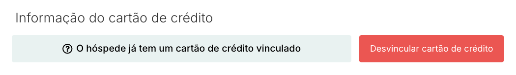 Se já existir um cartão guardado para o hóspede, verá a mensagem: “O hóspede já tem um cartão de crédito associado.” Pode então: