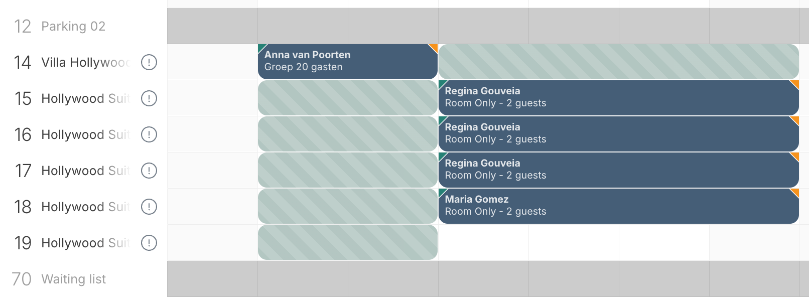 Se o Quarto Parent for reservado, os Quartos Child aparecem como bloqueados.