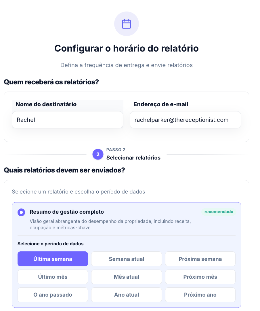 Validar os dados do destinatário: confirme quem vai receber o relatório.